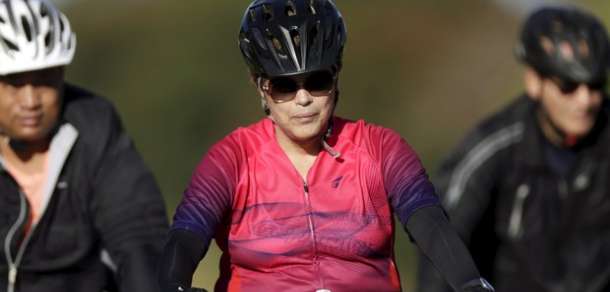 Em dia de votação do impeachment, Dilma pedala perto do Alvorada.