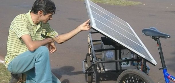 Estudante cria bicicleta elétrica movida a energia solar