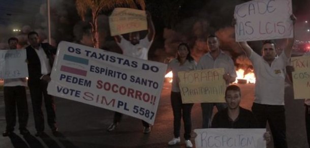 Taxistas protestam em Vitória (ES) pedindo regulamentação de apps.