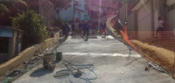 A comunidade do bairro Romão em Vitoria já pode ter uma ideia de como ficará o pavimento.