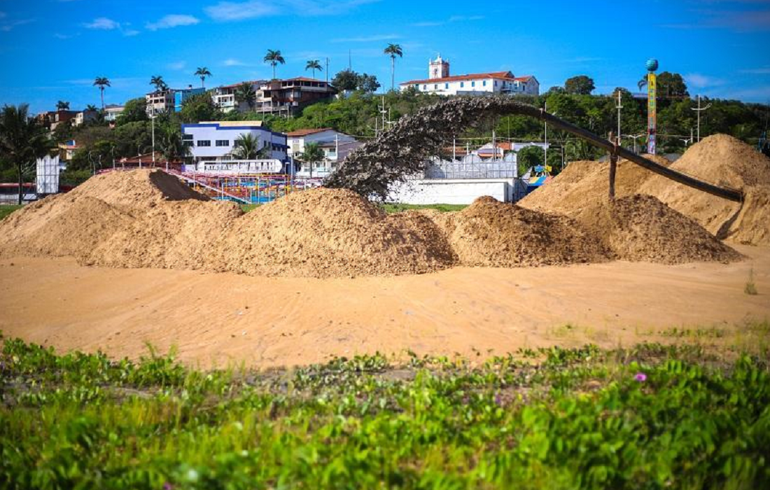 Seob da Serra executa serviço de desobstrução do banco de areia na foz do rio Reis Magos
