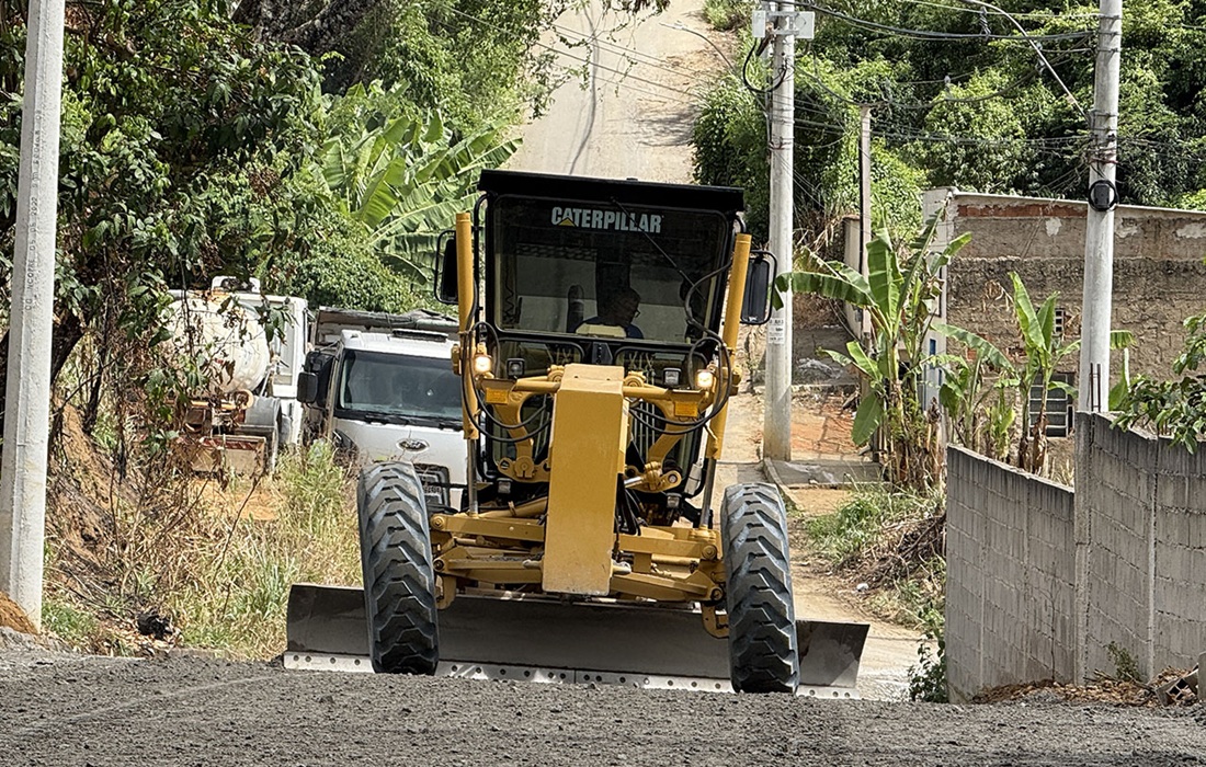 A Prefeitura realiza frentes de trabalho para pavimentação da rua no bairro Cariacica Sede