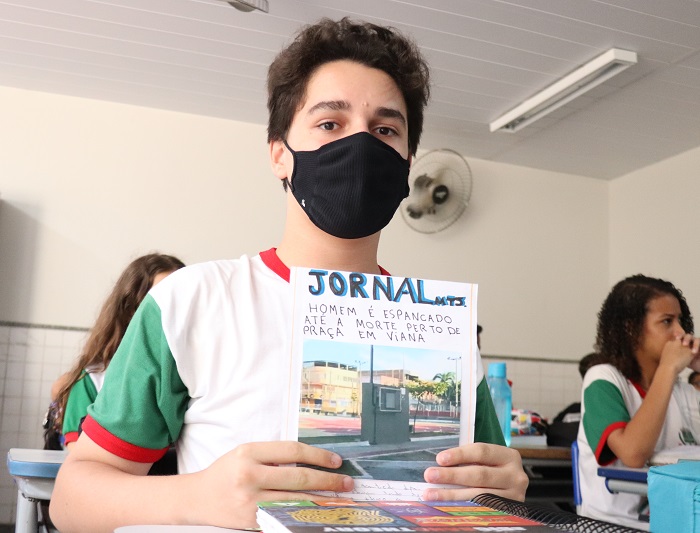 Estudantes aprendem técnicas jornalísticas de apuração e produzem matérias para o jornal.