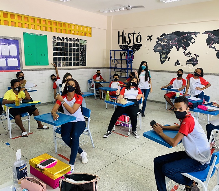 Cerca de 1.300 alunos vão se revezar entre a sala de aula e as atividades de aulas on-line.