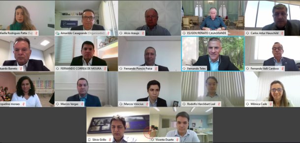 Representantes do Banestes, da VISA e do Governo do Estado realizam reunião.