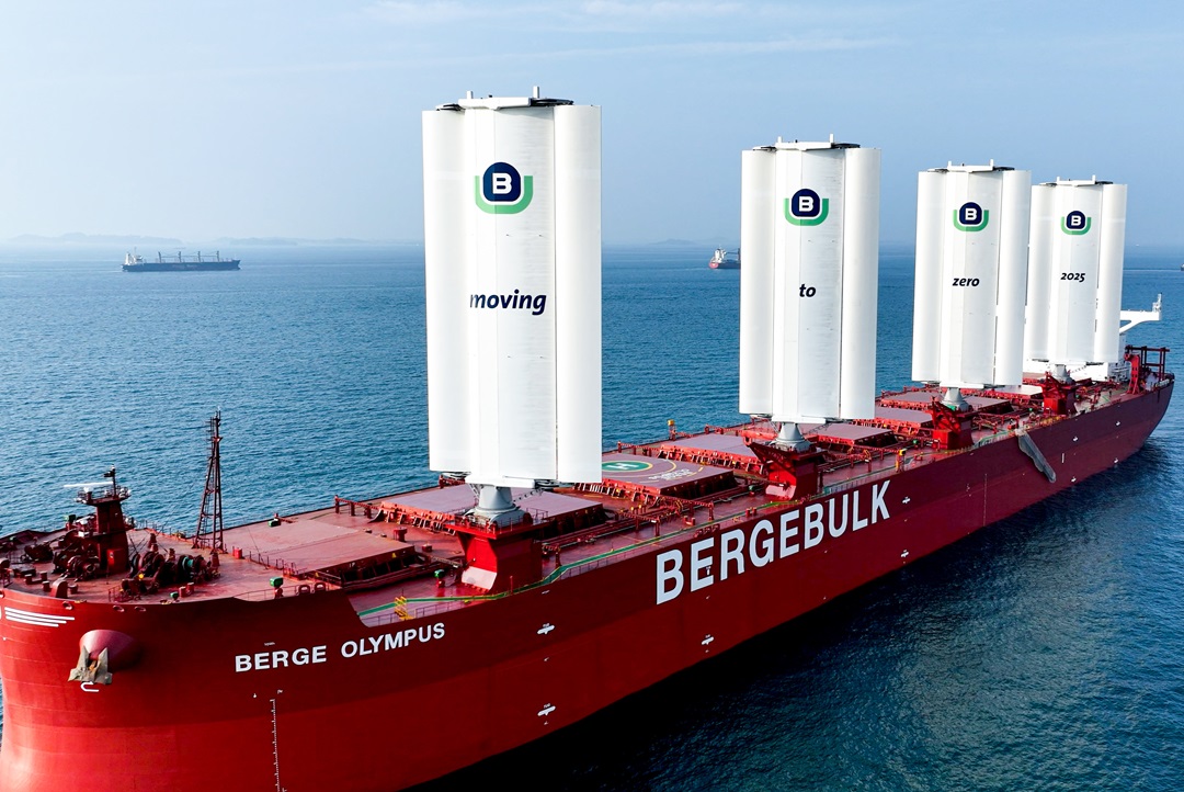 É viagem inaugural de navio com velas rígidas para transporte de minério de ferro para a China.