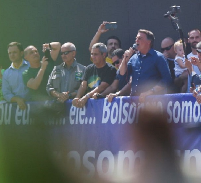 O presidente Jair Bolsonaro marcou presença nos atos e fez discursos atacando a democracia