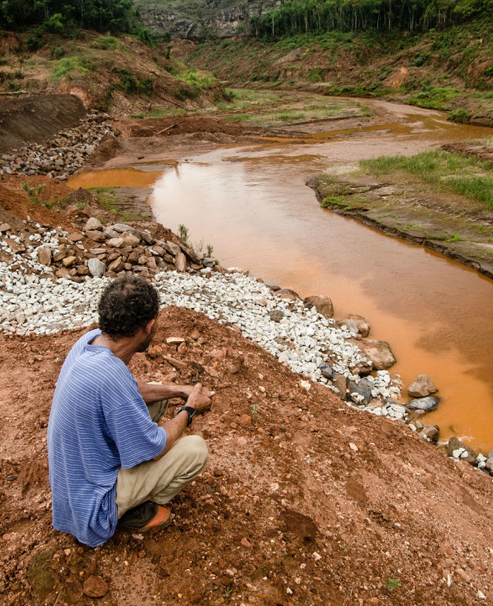 Rio Gualaxo do Norte (MG), foi severamente atingido pelas lamas da barragem de Mariana.