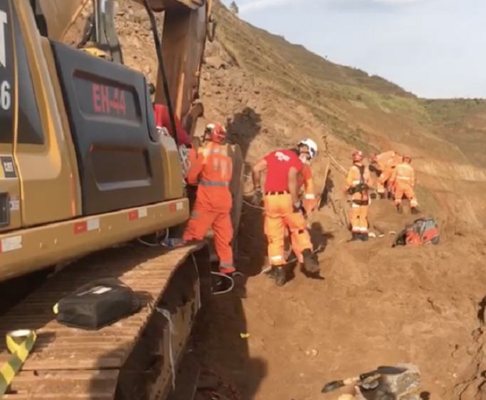 O trabalhador estava em uma escavadeira, quando foi atingido por um deslizamento de terra.