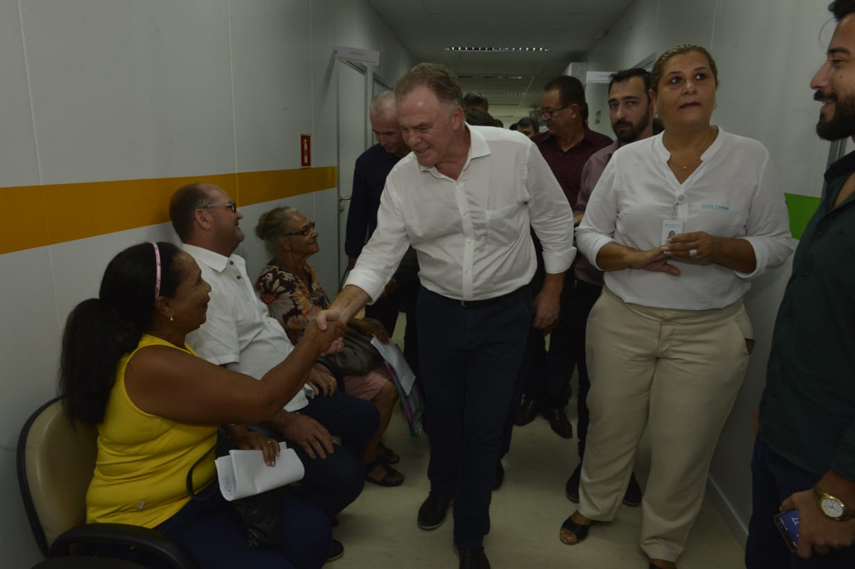 Na Rede Cuidar, ao lado do secretario de Estado da Saúde, Nesio Fernandes, o governador visitou as instalações e falou sobre a importância da assistência regional. A unidade atende a 14 municípios das microrregiões norte e noroeste, atendendo a casos de casos de hipertensão, diabetes, pré-natal de alto risco, criança e oncologia. A gestão é compartilhada entre o Estado e o CIM Norte.