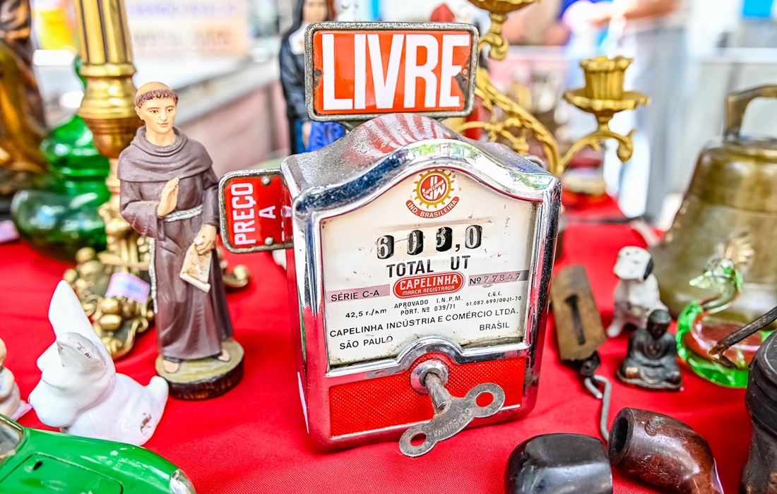 É fácil se perder pela rua transformada em túnel do tempo: porcelanas que guardam delicadeza, móveis que já ouviram risadas antigas, moedas e selos que cruzaram oceanos, bijuterias com toques de história e discos de vinil que ainda fazem ecoar canções de outras épocas. Cada uma das mais de 20 barracas é um baú de segredos, onde o passado se oferece como presente.