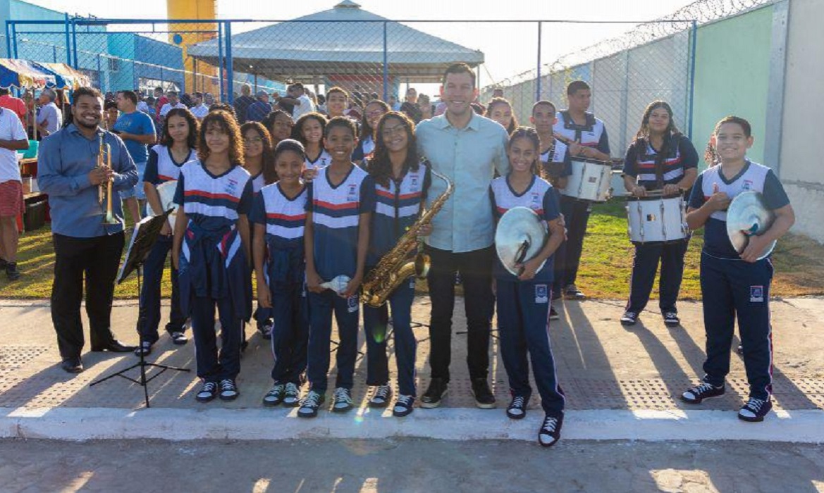 Prefeitura de Vila Velha inaugura uma quadra poliesportiva em escola da Ilha dos Ayres.