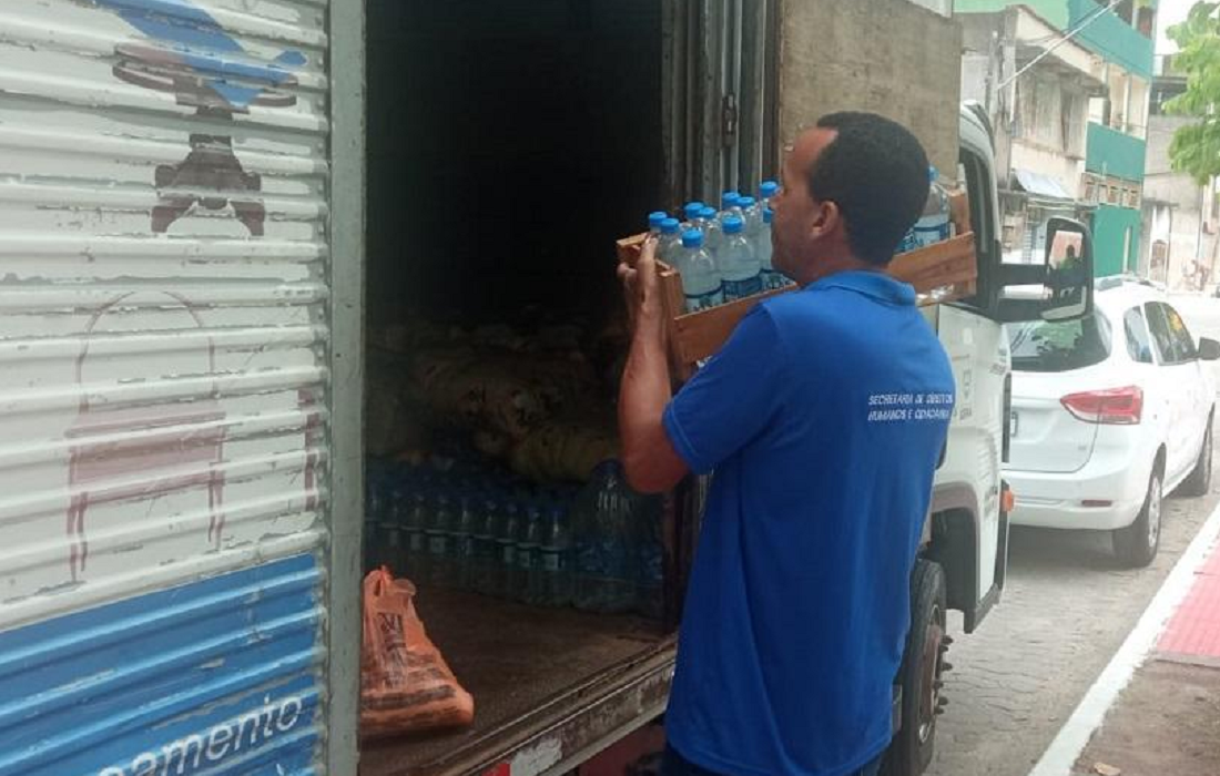 O material foi enviado em três caminhões baús lotados, que saíram da sede da Prefeitura.