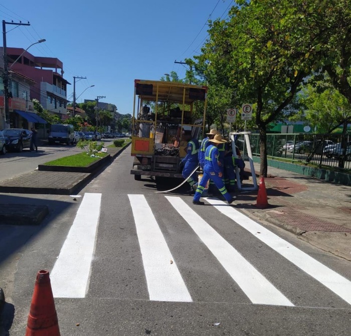 Com o foco na renovação das faixas de pedestres, as equipes fizeram um trabalho intenso.