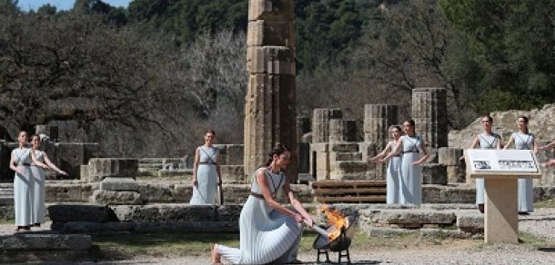 Cerimônia discreta ocorreu no local da antiga Olimpíada grega.