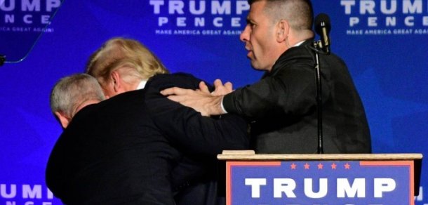 Trump é tirado do palco pelo Serviço Secreto durante discurso em comício.