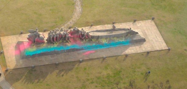 Monumentos amanhecem pichados com tinta colorida em SP.