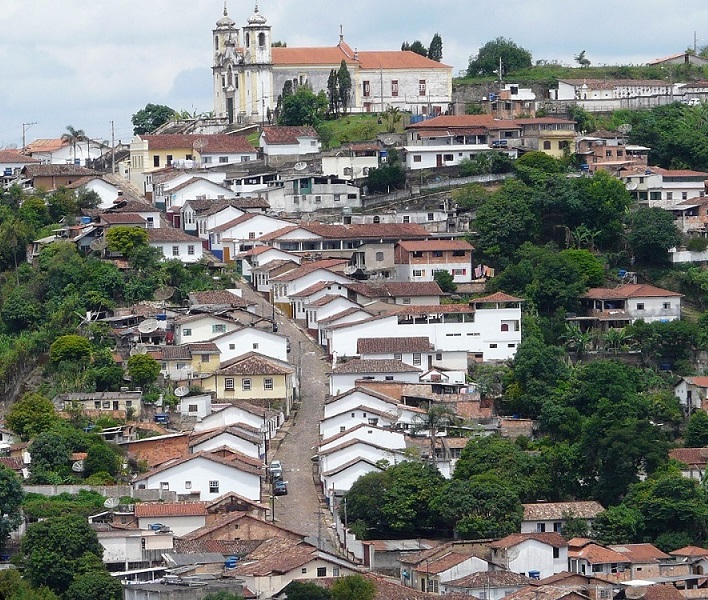 No alto da ladeira, a Igreja de Santa Efigênia, um dos principais pontos turísticos de Ouro Preto.
