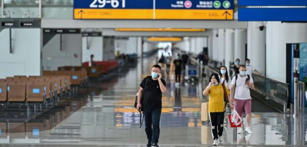 Passageiros de máscara no aeroprto Tianhe, em Wuhan.