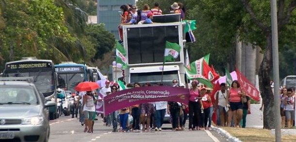 Manifestantes fazem ato contra reforma da Previdência em Vitória (ES).