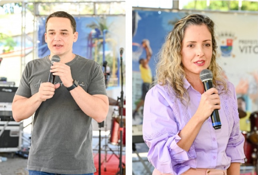 O prefeito de Vitória, Lorenzo Pazolini e a subsecretária de Proteção Social, Graziela Lorentz.
