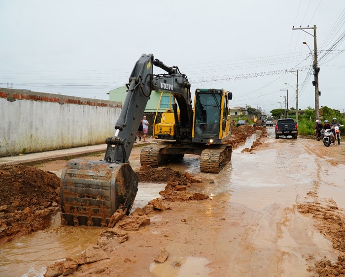 Máquinas estão fazendo a escavação no local para recuperar o sistema de drenagem afetado