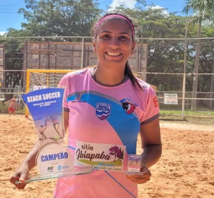 Professora campeã de futebol de areia incentiva crianças