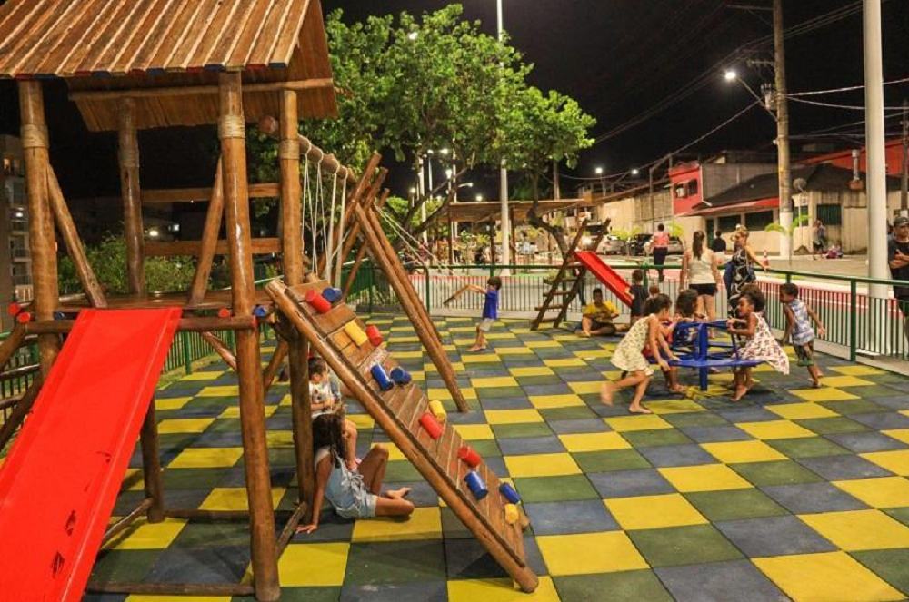 A criançada fez a festa na noite desta quinta-feira (19) na nova praça do Mirante, na Serra.