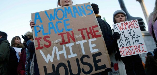 Mulheres fazem protestos contra Trump nos Estados Unidos.