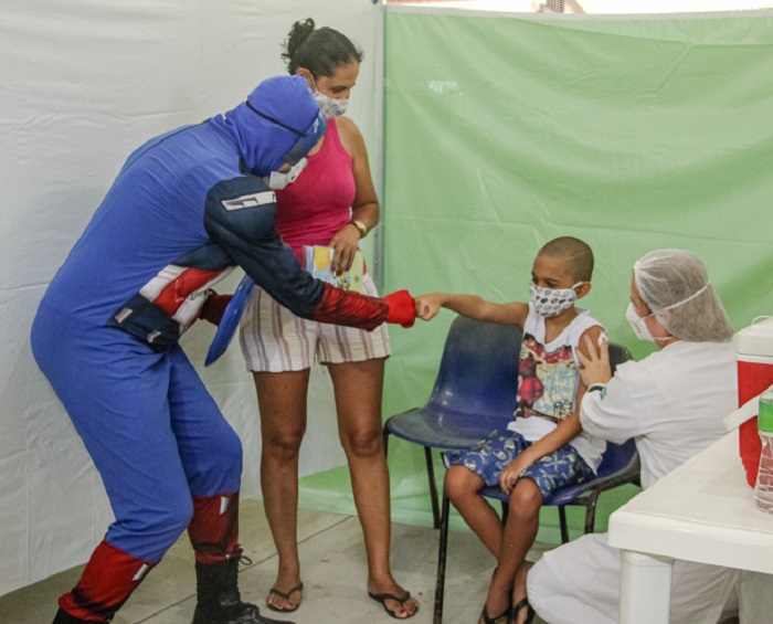 Confete, pipoca e bala marcam início de vacinação infantil
