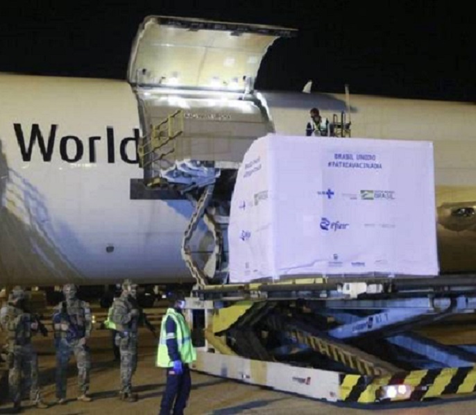 Mais 629 mil doses da vacina da Pfizer chegam ao Brasil