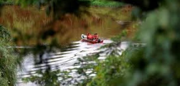 Membros de equipe de resgate no Paraopeba, após rompimento em Brumadinho.