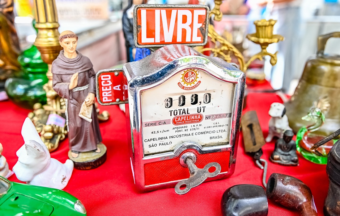 Ao caminhar pela rua, os visitantes encontram barracas repletas de peças que parecem guardar fragmentos do tempo: porcelanas delicadas, móveis antigos, moedas e selos raros, bijuterias "vintage" e discos de vinil que marcaram diferentes períodos da música.